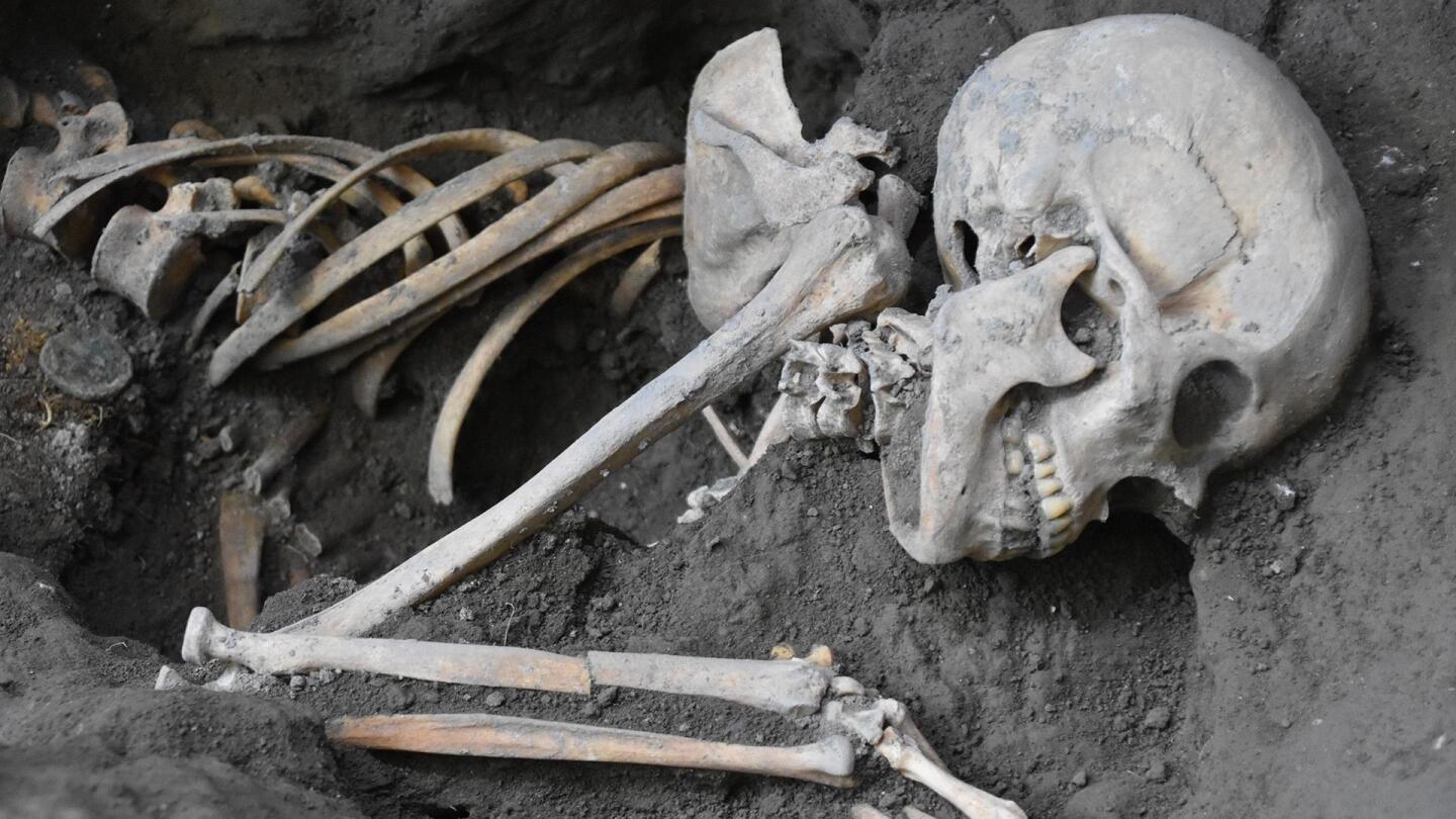 Anthropologist Dr. Valeria Amoretti is carefully excavating the remains of two bodies.